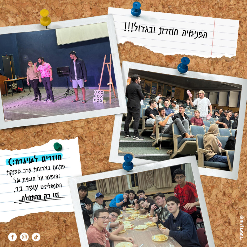 לצד מצוינות בלימודים, המדרשיסטים שלנו מתאפיינים בגיבוש חברתי, חינוך לערכים, ורמה תורנית גבוהה!