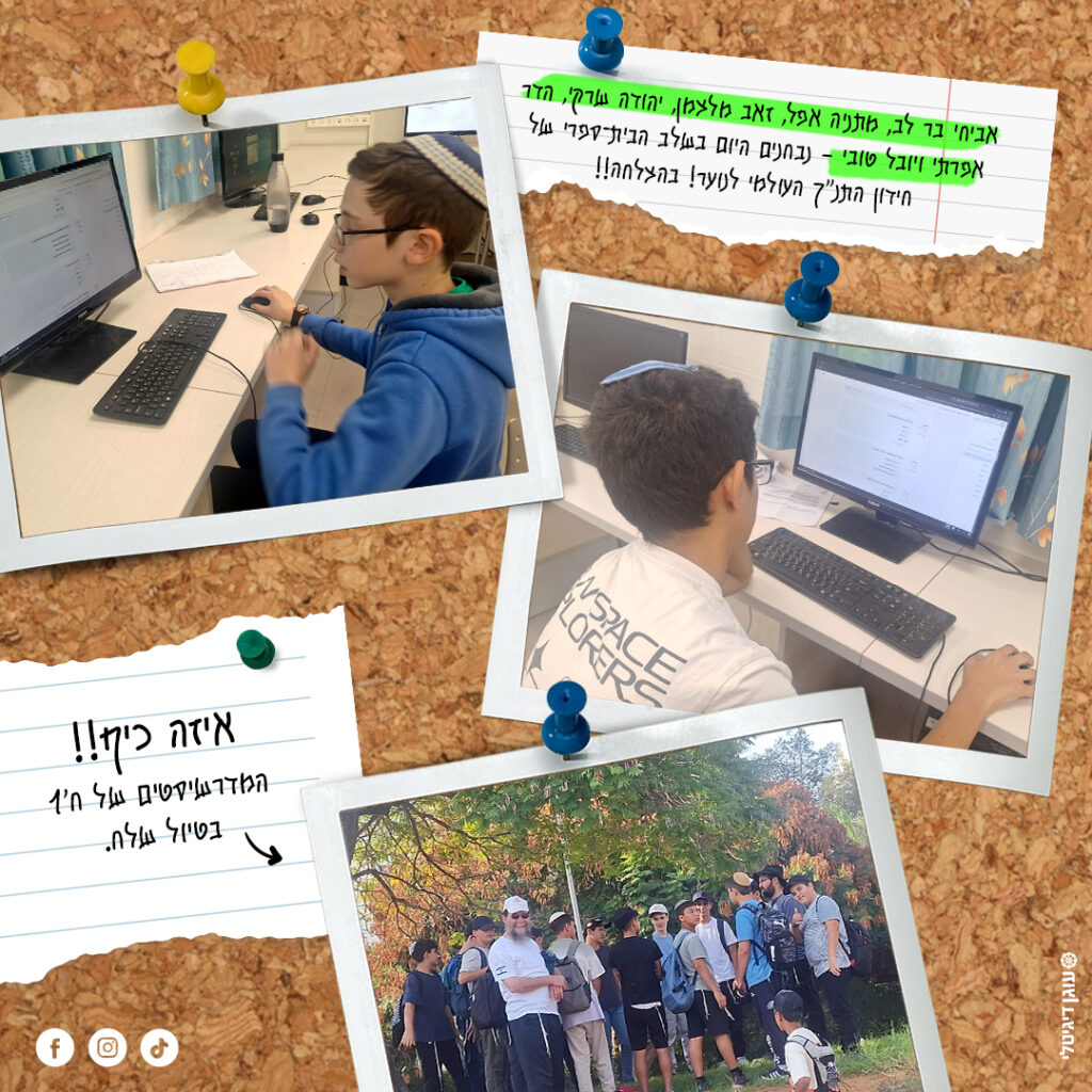 איזה יום מלא השראה עבר על המדרשיסטים שלנו! נבחרת המצוינים שלנו- אביחי בר לב, מתניה אפל, זאב מלצמן, יהודה שרקי, הדר אפרתי ויובל טובי נבחנו היום בשלב הבית־ספרי של חידון התנ״ך העולמי לנוער! גאים בכם על השקעה, התמדה ורוח הלמידה ובמקביל.. כיתת ח׳1 יצאה היום לטיול של״ח חווייתי במיוחד יום של למידה, אתגר וחיבור לשטח!