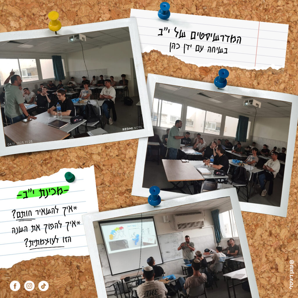 הדרך להשאיר חותם! המדרשיסטים של י״ב השתתפו בשיחה מעוררת השראה של ידן כהן, ששוחח איתם על איך להשאיר חותם, איך להפוך את השנה הזו לעוצמתית ומשמעותית עבורם היה מרתק, מעורר מחשבה ובעיקר- פותח לב למסע שמתחיל עכשיו אצלנו במדרשיה, אנחנו לא רק לומדים, אנחנו מתכוננים לחיים