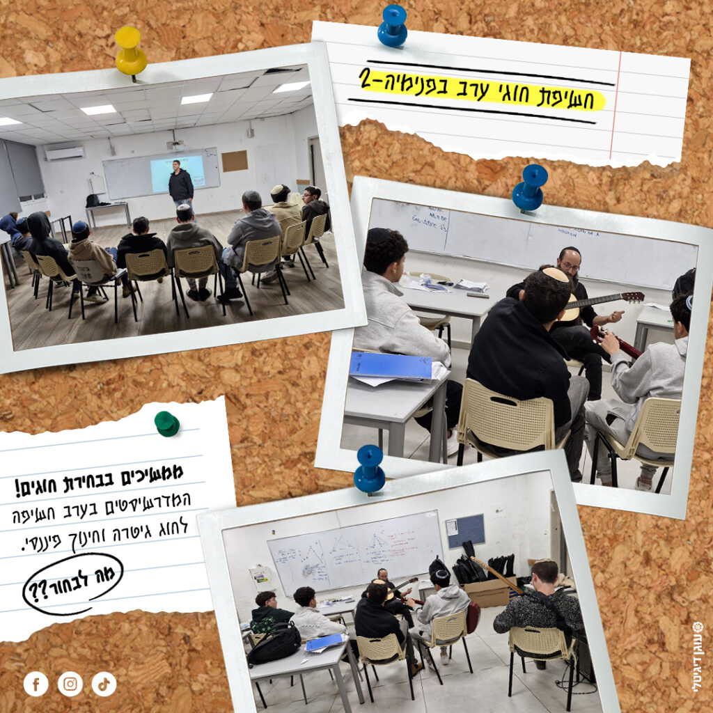 המשך חשיפת חוגי הערב בפנימייה של מדרשית נעם אורט כפ״ס אתמול בערב המדרשיסטים נחשפו לשני חוגים חדשים ומסקרנים במיוחד חינוך פיננסי וחוג גיטרה עוד ערב של למידה אחרת- כזו שמדברת לחיים עצמם, מפתחת כישורים ופותחת עולמות חדשים. ועכשיו השאלה, איזה חוג אתם הייתם בוחרים??