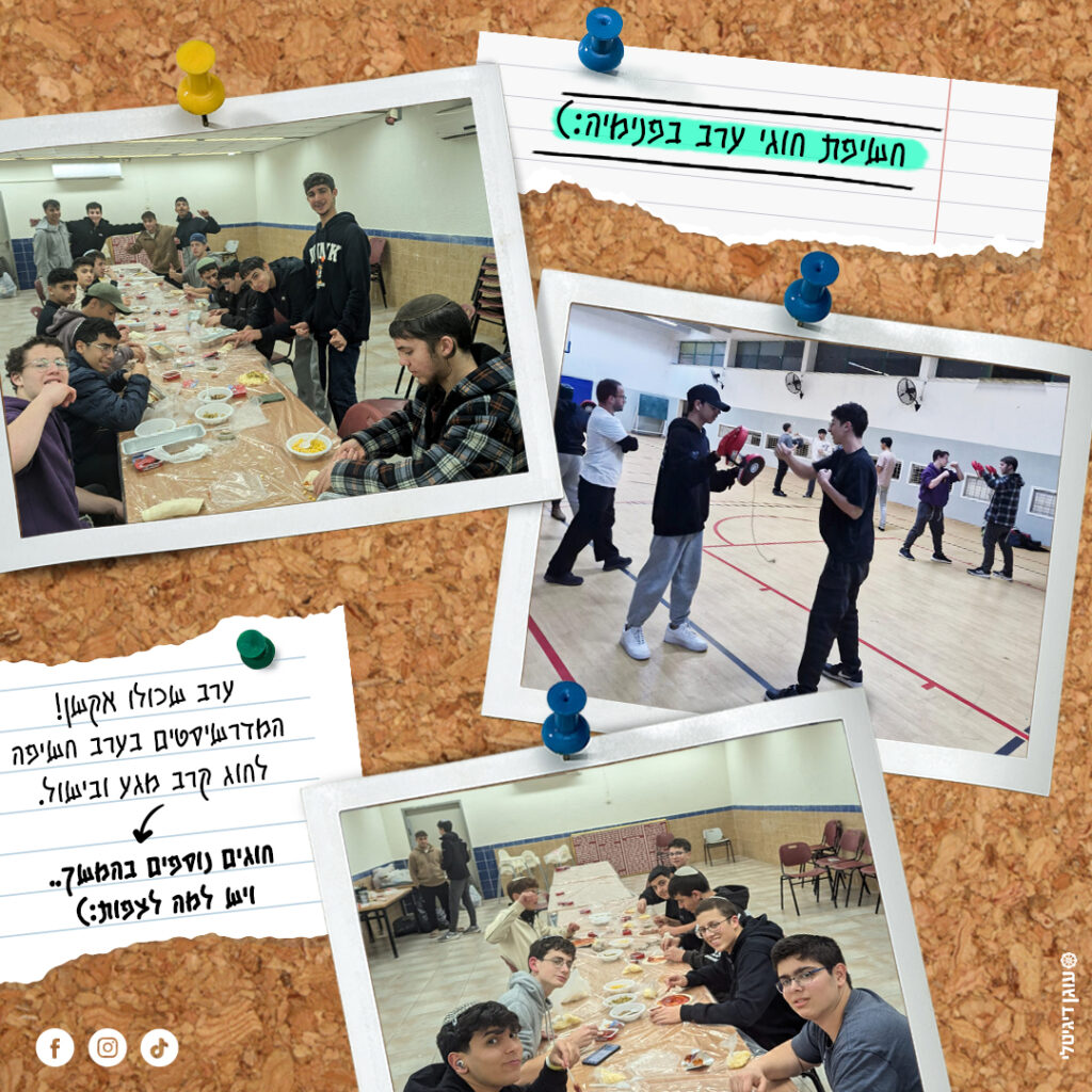 אתמול בערב נפתחה בפנימייה חשיפה ראשונה לחוגי הערב של מדרשית נעם אורט כפ״ס 💙✨ המדרשיסטים התאמנו, זזו, יצרו וגם בישלו בחוגי קרב מגע🥋ובישול 🍳 ערב של עשייה, חוויה וגיבוש פנימייתי אמיתי. וזו רק ההתחלה… חוגים נוספים ייחשפו בהמשך, ויש למה לצפות 👀🔥